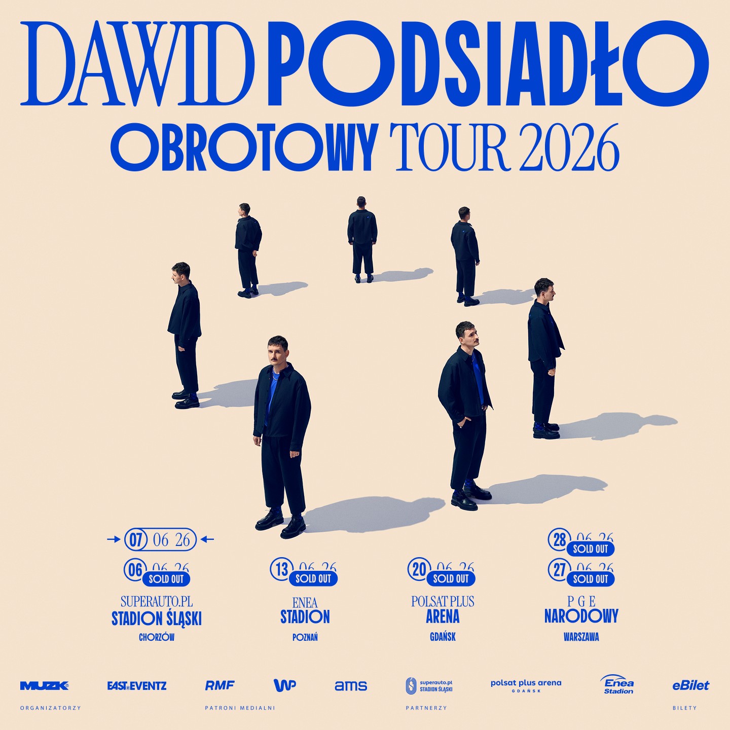 Wszystko wskazuje na to, że Dawid Podsiadło jest coraz bliżej wyrównania własnego rekordu! Po pięciu wyprzedanych koncertach na największych stadionach w Polsce, do trasy OBROTOWY TOUR 2026 dokłada kolejną datę - 7 czerwca 2026 z występem na Superauto.pl Stadionie Śląskim w Chorzowie. Pierwsza pula biletów na dodatkowy koncert trafi do sprzedaży już w piątek, 5 grudnia o godz. 12:00 na eBilet.pl. To jednak nie wszystkie niespodzianki, które artysta przygotował na ten dzień!
