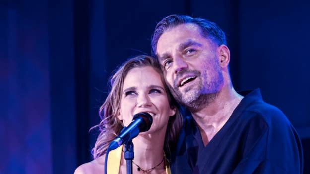 Agnieszka Kaczorowska i Marcin Rogacewicz w czułym pocałunku. Tuż po spektaklu nie szczędzili sobie czułości